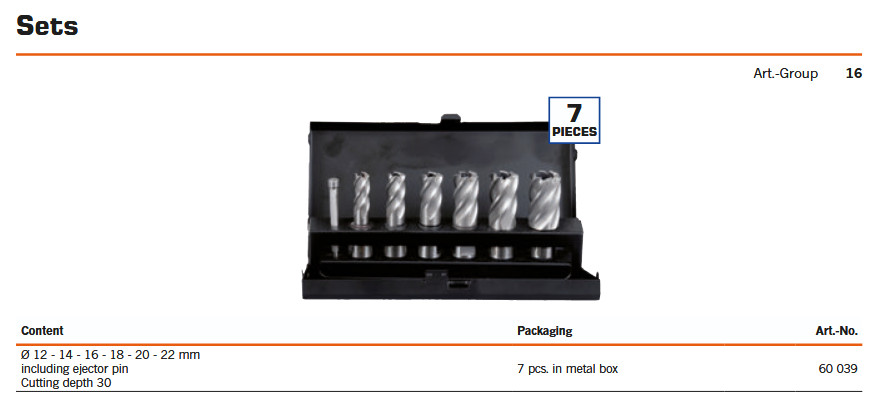 Magfúró készlet HSS-CO 8% 7 db. 12-22 mm acéllemez kazettában
